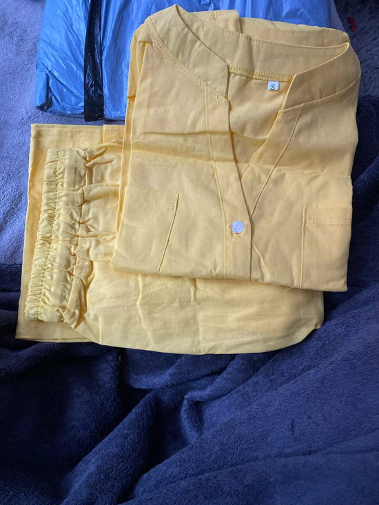 Ten 2-częściowy zestaw to prawdziwy zwycięzca! Koszula zapinana na guziki jest super modna, a spodnie są bardzo wygodne. Uwielbiam ten elegancki, ale swobodny wygląd!